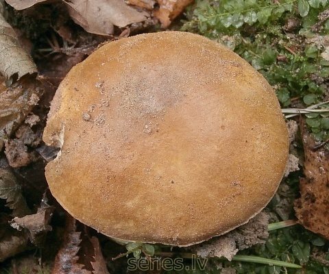 Kastaņu smilšbekas oranžbrūnajai vai kastaņbrūnajai cepurītei augšpuse ir sausa (bez gļotām vai tml.) un gluda (ne samtaina, plūksnaina vai tml.).