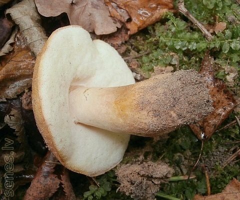 Nelielu izmēru beka - ar viencipara skaitļos izsakāmu cepurītes diametru un kātiņa augstumu. Cepurītes virsa ir oranž- vai kastaņbrūna, sausa un gluda (nesamtaina). Stobriņi ir ar mazām apaļām atverēm, sākumā balti, bet vēlāk mazliet dzeltē. Kātiņš ir cepurītes krāsā vai nedaudz gaišāks, tā iekšienē ir kameras ar irdenāku pildījumu, kuras vecumā pārtop īstos dobumos. Atšķirībā no ārēji diezgan līdzīgās lāču samtbekas (lāčubekas), mīkstums ir daudz cietāks, kā arī griezuma vietās nezilē. Aug rudens pusē gan zem ozoliem (retāk arī zem citiem lapukokiem), gan zem priedēm. Skaitās ļoti reti sastopama, tādēļ ir iekļauta Aizsargājamo sugu sarakstā. Ēdama (uzreiz cepama), taču šāda statusa dēļ pareizāk būtu neievākt. |