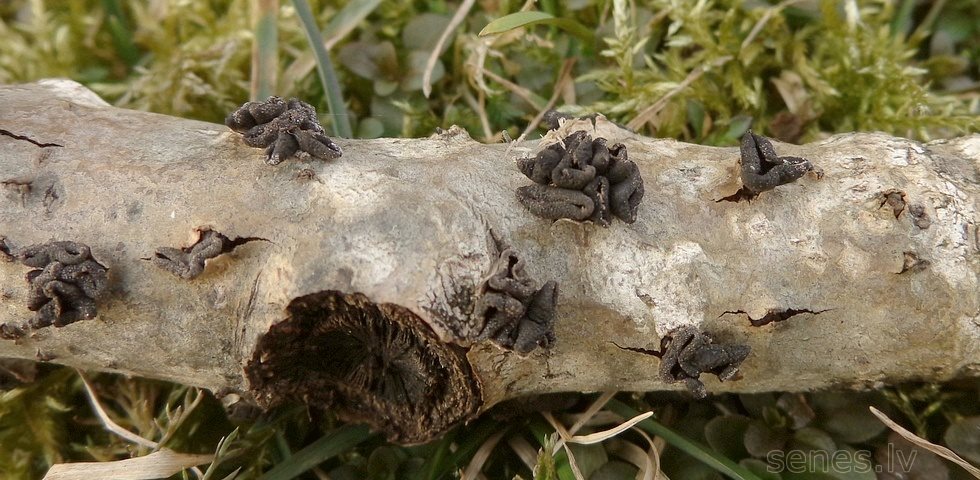 Apšu graudaine Encoelia fascicularis / Sclerencoelia fascicularis Aug uz atmirušas apšu koksnes ziemā, agrā pavasarī. |