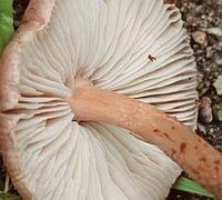Pilošā gļotaine Limacella guttata / Limacellopsis guttata Gļotaina, ar izžūstošiem pilieniņiem uz/virs gredzena. |