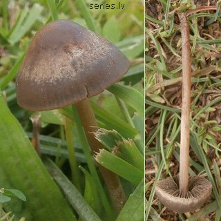 Tauriņu svārstene Maza sēne ar tievu garu kātu, kas aug mēslotos zālājos. |