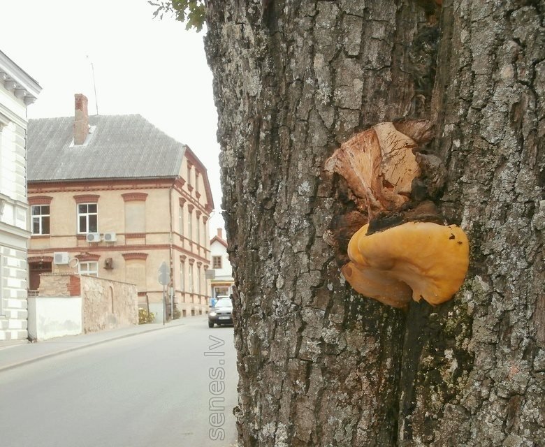 Košās zeltpores, kas izaugušas ozola stumbra plaisās gan pilsētvidē (pa kreisi),
