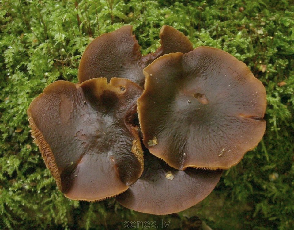 - tumši sarkanbrūna. Aug nevis uz zemes kā citas tīrumenes, bet uz gan trupošas lapkoku koksnes, parasti grupās.