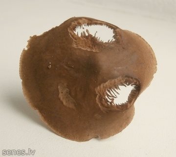 kura briedumā ir plakana vai ar uzlocītu malu un nereti arī neliela paugura rotāta; ar platām un sākumā