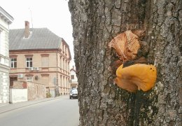 Sīkstās augļķermeņu atliekas saglabājas arī līdz nākamajam gadam (šeit: jau 5. martā). |