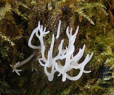Sīka koraļļveidā sazarota sēne tīri baltā krāsā, kura aug rudens pusē uz trūdošas koksnes.