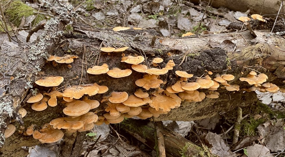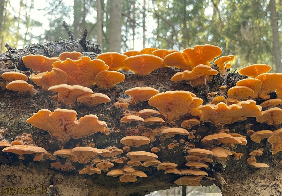 | Foto: sugas sēnes kā tādas | Foto: ļoti daudz ziemas vidū | Foto: ļoti daudz agrā pavasarī | Foto: pat uz vecām durvīm! |