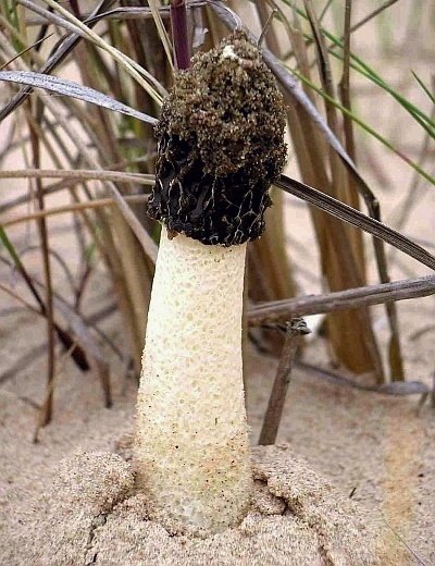 Vienubrīd no "olas" spēji izaug "kāts", kam galotni klaj smirdīga viela - gleba.