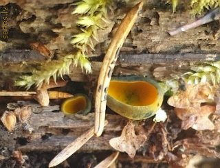 ar oranžu mīkstumu. Aug agrā pavasarī, driz pēc sniega nokušanas uz meža nobirās esošām skujkoku sēklām un eksistē