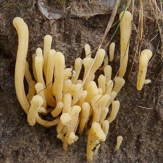 Mālkrāsas vālene Clavaria argillacea Mēreni slaida; aug uz zemes (noteiktu augu tuvumā?). |